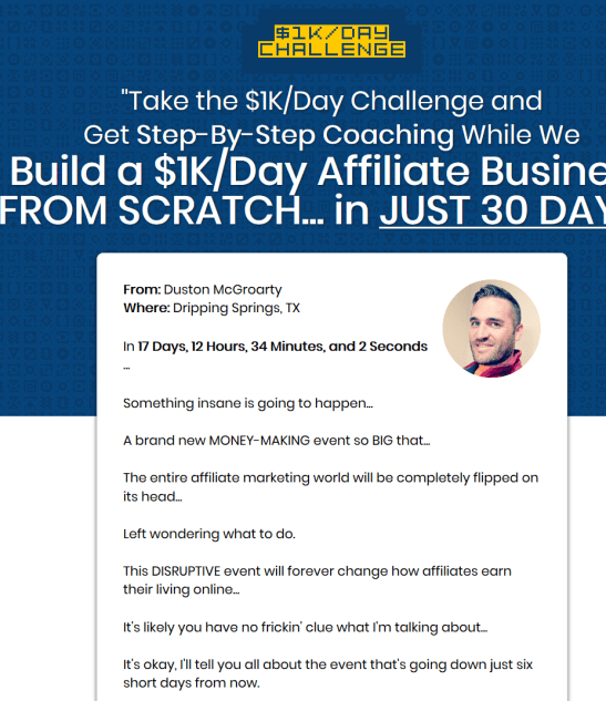 Take the $1K/Day Challenge and Get Step-By-Step Coaching While We